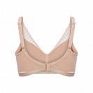 Поверх гладкой чашки, которая придает бюсту красивую округлую форму, проходит кружевное полотно с орнаментом в горошек, имитирующее бралетт. Завышенная линия декольте, высокая пройма и широкая спинка, которая у застежки становится выше, а также кружево, заходящее на бретели, скрывают возможные неровности и гарантируют безупречную посадку.